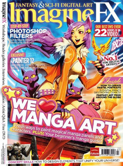 I took a video from the magazine “ImagineFX” and popped it in my PS3. Most of the videos from this magazine don’t have any audio, so it is usually best to watch it at 1.5x speed at the least. This issue has a reported 22 hours of video training. At a liquidation price from my closest Borders, this was a steal. This is the best magazine I have ever seen when it comes to developing and improving your art skills. The illustrator for the cover, Gonzalo, does an entire screen capture of his painting.