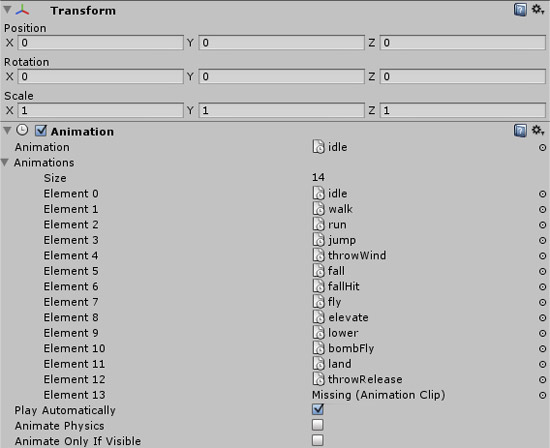 The above image is the type of thing you want to copy. If you aren’t using the model in my project, Ramius is the character’s model I made in Blender3D. Unity will create all of these items based on your import settings. The animations were created in the import settings as well with the names you give them. Select the animation like above copy and paste it.